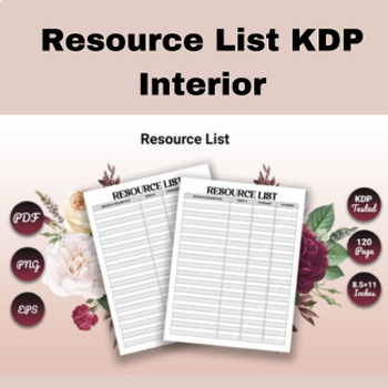 Resource List Log Book (KDP Interior) is perfect for your low Content or no-content business. Also 100% formatted and tested for KDP. Ready for printing. It has 120 pages, It is ready (PDF) for uploading.